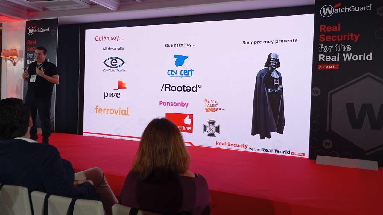 Si queríamos seguridad real para un mundo real, el auténtico baño de realidad nos lo dio Román Ramírez, director general de RootedCON y reconocido experto en ciberseguridad. Una ponencia muy interesante, en la que no se olvidó de incluir a Darth Vader, con lo que ya de entrada se ganó a una parte de la audiencia. Además de ofrecer un histórico de los hitos de la ciberseguridad y un retrato de organizaciones de cibercrimen como Evil Corp, dio varios avisos para navegantes.